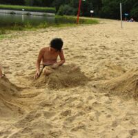 Bei Frisbee, Wasserball und Burgenbau kamen alle auf ihre Kosten. Auf dem Rückweg gönnten wir uns an den Finnhütten noch ein Eis.