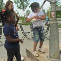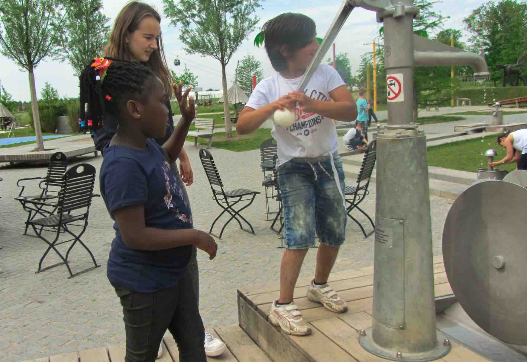 Gemeinsam ging es mit der Willkommensklasse zu den Spielplätzen der " Gärten der Welt ”.